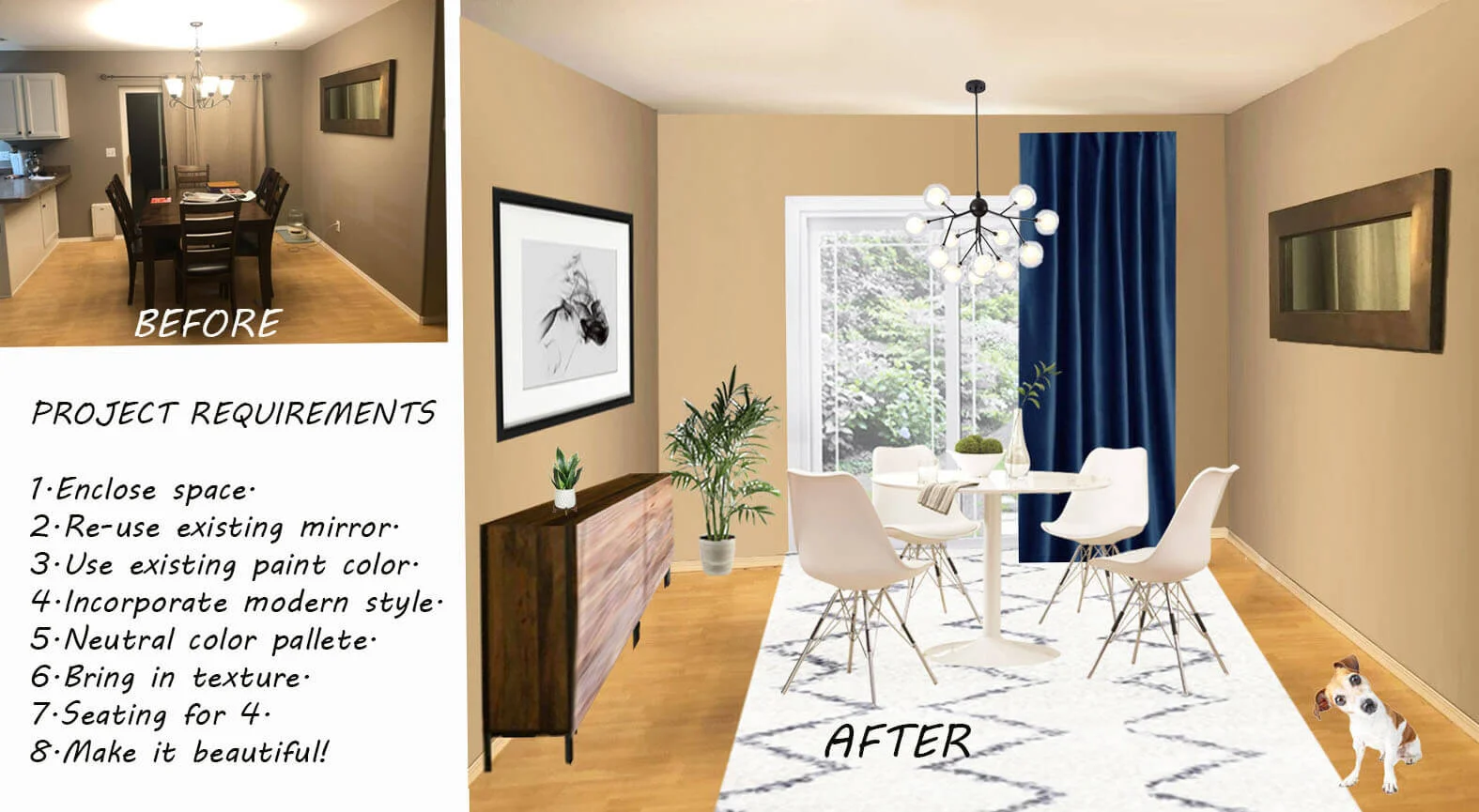 Choose this option for the full virtual interior design treatment! Get a curated shopping list and see every item selected in your room!